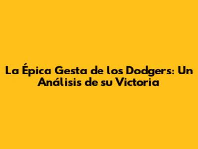 La Épica Gesta De Los Dodgers: Un Análisis De Su Victoria