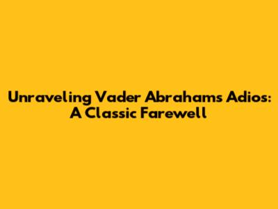 Unraveling Vader Abraham's 'Adios': A Classic Farewell